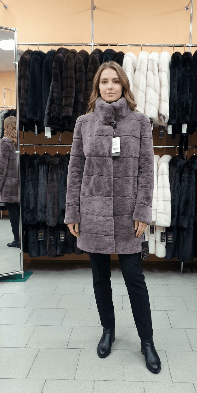 Представляем вашему вниманию одну из самых популярных моделей сезона — стильную шубу из меха бобрика (кролик рекс) в нежном и благородном оттенке «капучино». Основные преимущества модели: Материал: Натуральный мех бобрика отличается невероятной мягкостью и густым подшерстком. Он шелковистый на ощупь, внешне напоминает шиншиллу, но гораздо практичнее в носке. Дизайн: Ультрамодная поперечная выкладка меха придает изделию фактурность и современный вид. Прямой силуэт подчеркивает стройность фигуры. Воротник-стойка: Высокий воротник надежно защищает от ветра и позволяет обходиться без шарфа, при этом выглядит очень аккуратно. Комфорт: Длина 80 см — идеальный вариант для активных женщин. В такой шубе удобно водить машину (автоледи) и легко сочетать её как с классическими брюками, так и с юбками. Характеристики: Цвет: Капучино (мягкий серо-коричневый подтон) Длина: 80 см Размерный ряд: от 40 до 54 Тип кроя: Поперечка