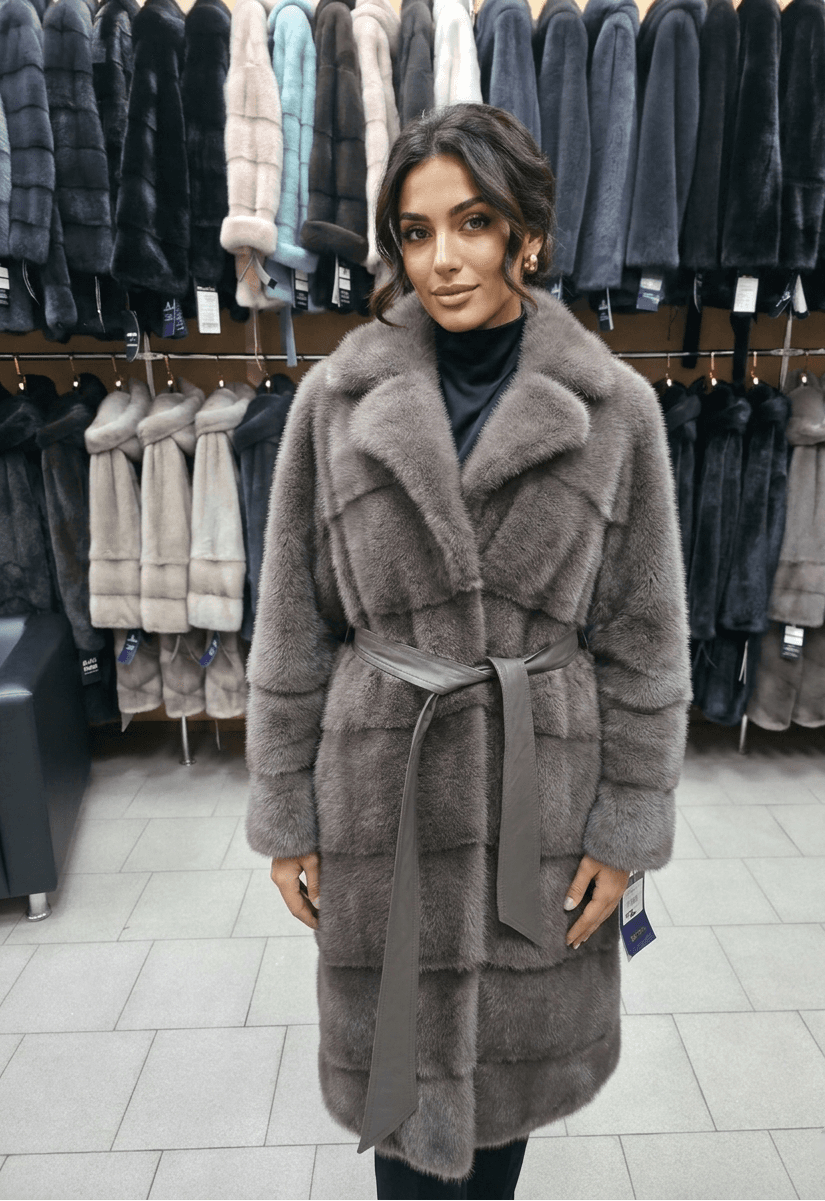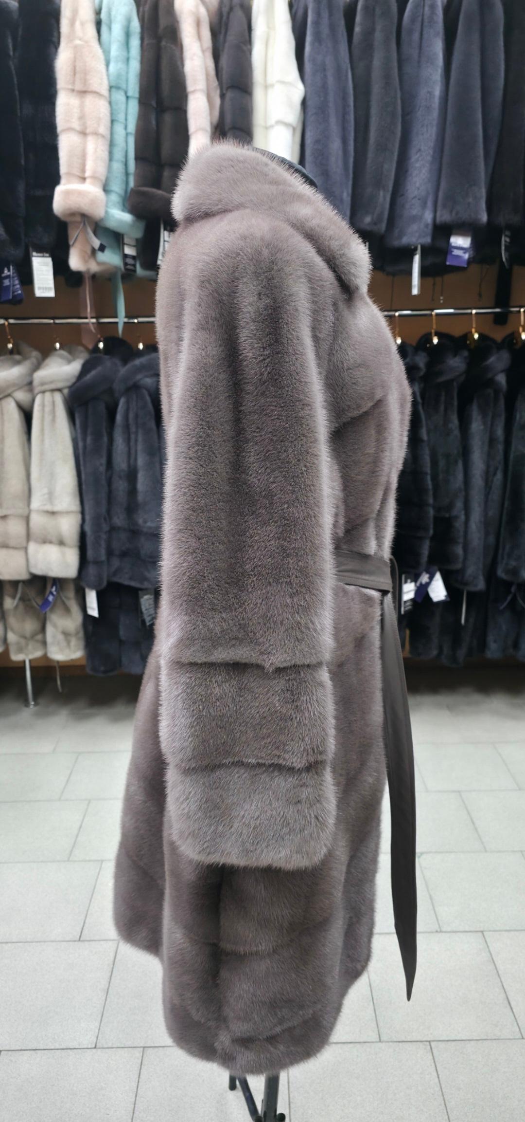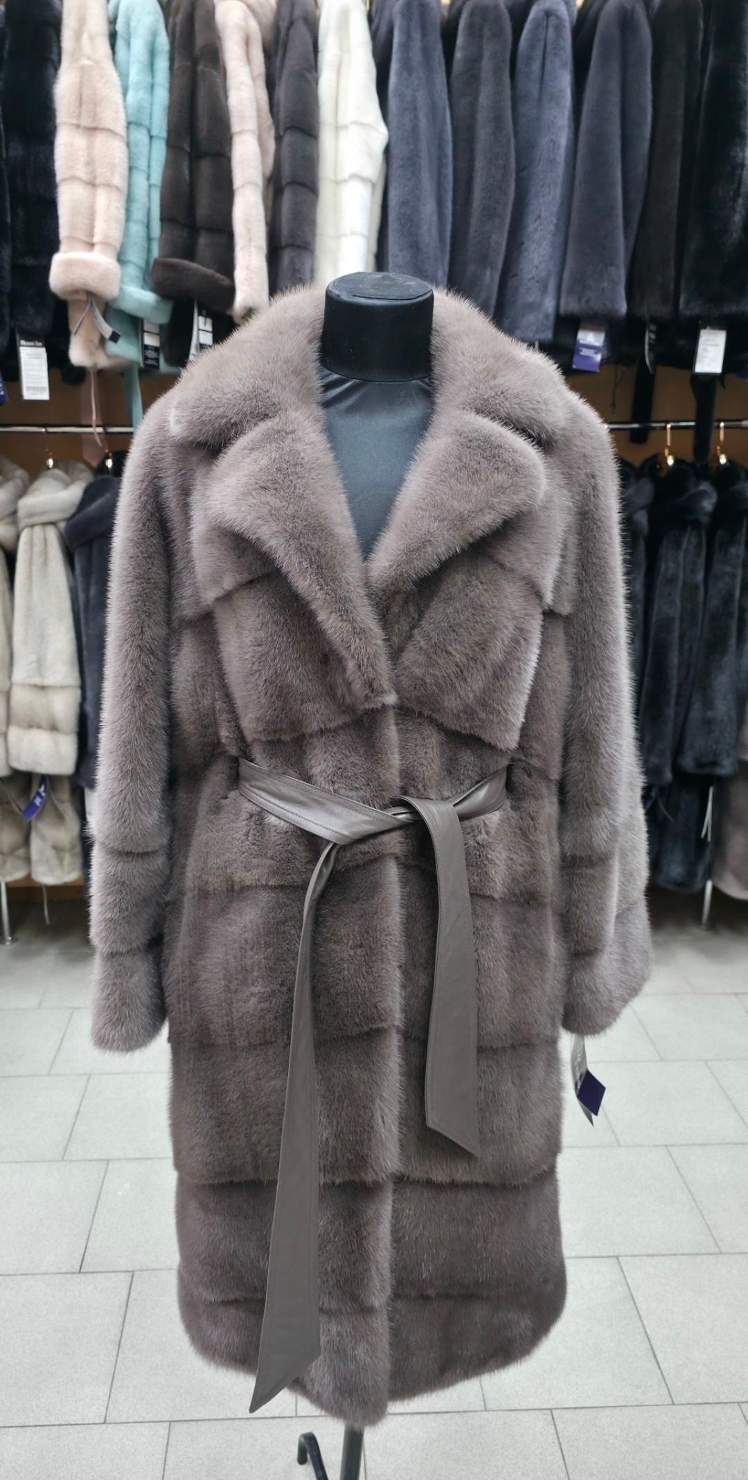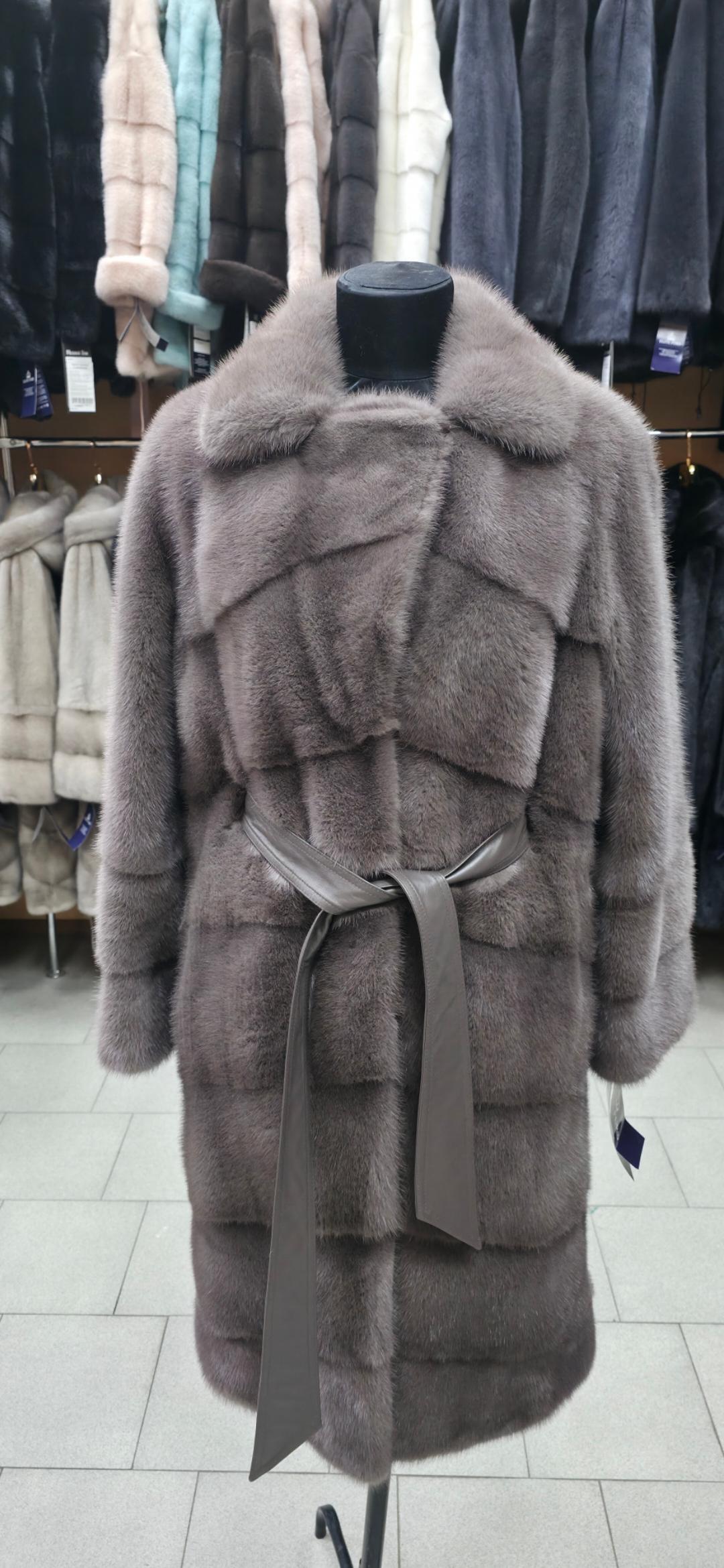 Роскошная норковая шуба: в цвете «Капучино» Представляем вашему вниманию воплощение изысканности и тепла — норковую шубу, которая станет жемчужиной вашего зимнего гардероба. Эта модель сочетает в себе безупречный стиль и практичность, подчеркивая статус и тонкий вкус своей обладательницы. Основные характеристики: Материал: Высококачественный натуральный мех норки. Ворс густой, набивной, с благородным шелковистым блеском. Цвет «Капучино»: Мягкий, глубокий оттенок, который выглядит дорого и свежо. Идеально сочетается как с повседневными, так и с вечерними образами. Фасон: поперечный крой с английским воротником, который придает образу строгость и элегантность. Воротник можно носить как в открытом виде, так и зафиксировать для защиты от ветра. * Длина: 100 см — оптимальный вариант, закрывающий колено. Такая длина отлично сохраняет тепло и позволяет сочетать шубу с платьями, юбками и брюками. * Акцент на талии: В комплекте идет стильный кожаный пояс в тон, который позволяет выгодно подчеркнуть силуэт. * Размер: 46. Почему стоит выбрать именно эту модель? 1. Поперечная выкладка меха: Визуально добавляет фактурности и делает дизайн более современным. 2. Универсальность: Английский воротник позволяет экспериментировать с аксессуарами — платками, шарфами и украшениями. 3. Комфорт: Легкий вес натурального меха обеспечивает удобство при носке, не стесняя движений.
