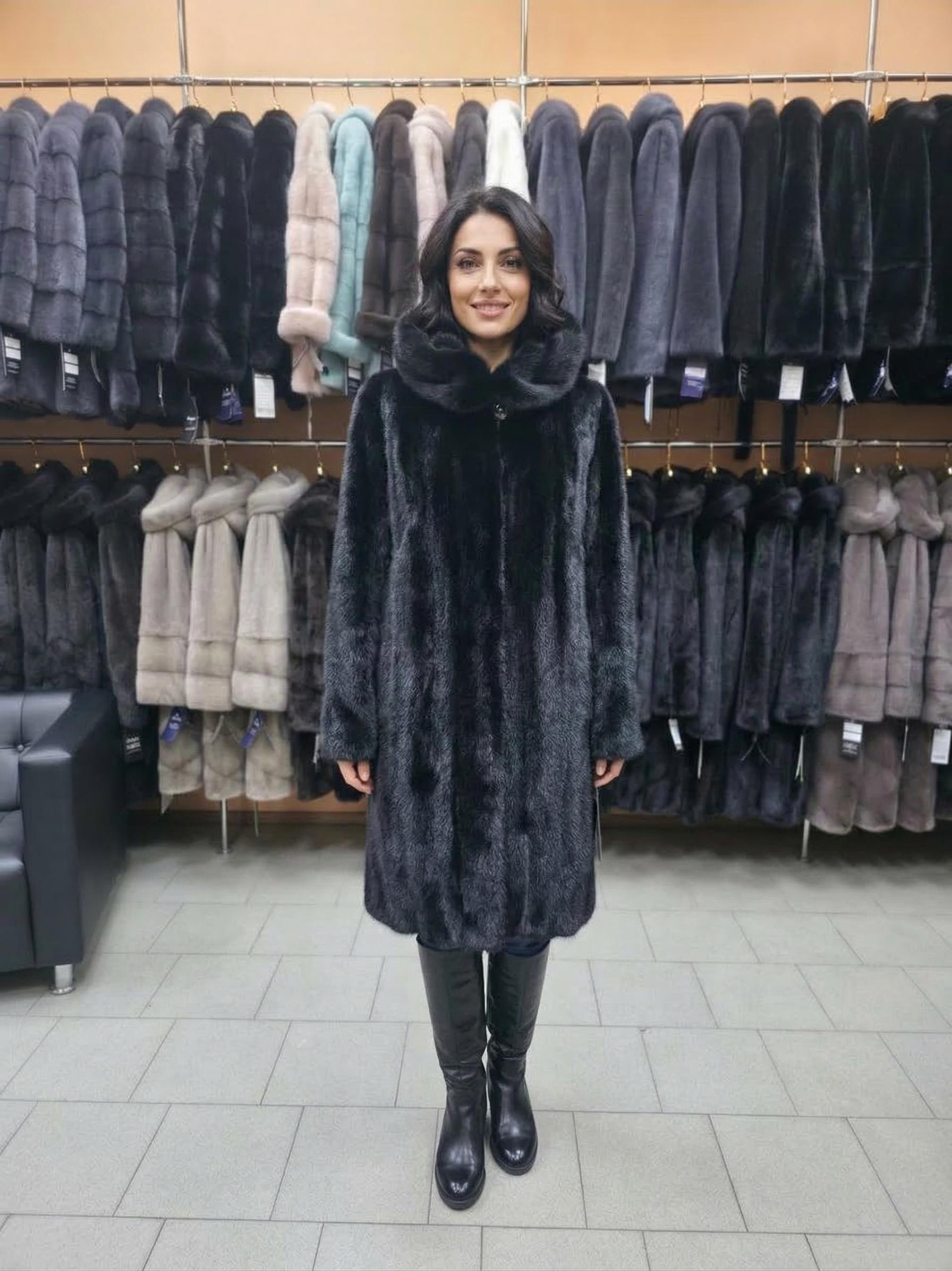 Безупречный стиль: Норковая шуба «Френч» в цвете Black Diamond Представляем воплощение элегантности и практичности — модель «Френч», созданную для тех, кто ценит лаконичный крой и безупречное качество меха. Эта шуба станет основой вашего зимнего гардероба на долгие годы. Особенности модели, которые влюбляют: Силуэт «Френч»: Прямой, стройнящий крой, который идеально садится на любую фигуру. Благородный черный цвет норки обладает глубоким «бриллиантовым» блеском, подчеркивая статусность владелицы. Функциональные разрезы: По бокам расположены аккуратные разрезы длиной 21 см. Они не только добавляют образу динамики, но и делают модель максимально удобной — их можно застегнуть для сохранения тепла или оставить открытыми для комфортного шага и поездок в авто. Роскошный капюшон: Глубокий, объемный капюшон — идеальная альтернатива головному убору. Он надежно защищает от ветра и снега, аккуратно обрамляя лицо. Длина и защита: Оптимальная длина обеспечивает идеальный баланс между теплом и легкостью движений. Характеристики: Мех: Натуральная отборная норка (густой подпушек и мягкий остевой ворс). Детали: Застегивающиеся боковые разрезы, надежная фурнитура, глубокий капюшон. Размерный ряд: В наличии широкая палитра размеров — от 40 до 58. Мы поможем подобрать идеальный вариант именно под ваши параметры! Ждем вас на примерку! Посмотрите, какой впечатляющий выбор оттенков и моделей представлен в нашем салоне — у нас есть шуба мечты для каждой. Доставка: Отправляем с примеркой в любую точку. Оплата: После примерки Размер 52
