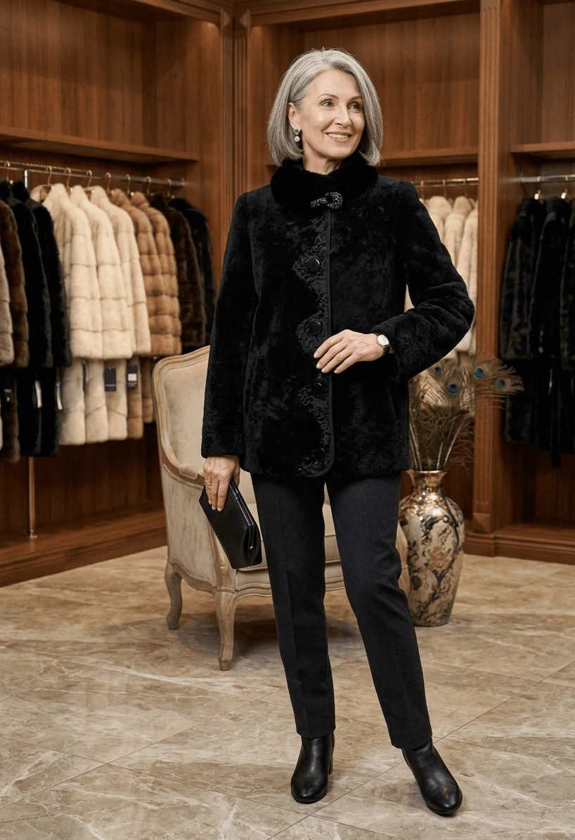 Дизайнерский полушубок: микс астрагана, норки и каракульчи Воплощение мехового искусства. Эта эксклюзивная модель создана для тех, кто ищет не просто зимнюю одежду, а уникальный элемент гардероба. Благодаря продуманной комбинации фактур, полушубок выглядит дорого, современно и визуально стройнит. Искусство в деталях: Основа из Астрагана: Премиальная овчина с особым завитком. Мех очень легкий, но невероятно теплый и устойчивый к износу. Вставки из Каракульчи: Изящные вертикальные вставки вдоль застежки из натуральной каракульчи создают неповторимый муаровый узор. Эти вертикальные линии визуально вытягивают силуэт, придавая фигуре особую стройность. Норковый воротник-стойка: Плотный мех норки на воротнике не только защищает от холода, но и подчеркивает статусность модели. Завершает образ роскошная декоративная застежка-брошь. Уникальный дизайн: Сочетание гладкой норки, фактурного астрагана и узорчатой каракульчи делает этот черный полушубок многогранным и интересным. Характеристики: Материал: Натуральный астраган, вставки — натуральная каракульча, воротник — натуральная норка. Цвет: Насыщенный черный. Размерный ряд: Обширная палитра размеров от 40 до 60. Мы гарантируем идеальную посадку на любой тип фигуры. Фурнитура: Надежные пуговицы в тон и акцентная брошь на горловине. Почему выбирают нас: 🚛 Доставка по всей РФ: Оперативно отправим ваш заказ в любой город. 💎 Оплата после примерки: Мы доверяем своим клиентам. Примеряйте, влюбляйтесь в качество и только потом оплачивайте. 📸 Гарантия соответствия: На фото представлено реальное изделие из нашего торгового зала. Хотите подчеркнуть свою индивидуальность этой зимой? Напишите нам прямо сейчас, чтобы уточнить наличие вашего размера!