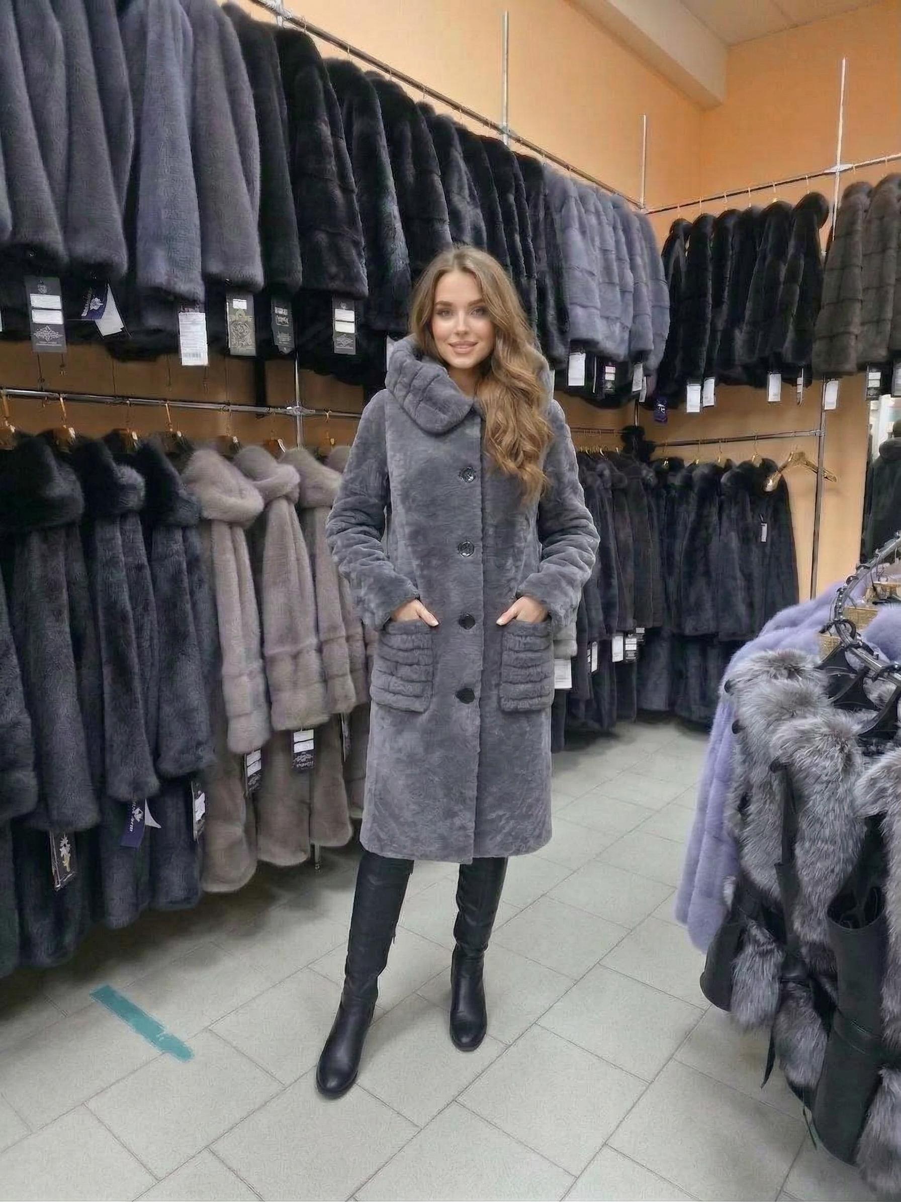 Безупречный стиль в цвете «Графит» Представляем хит нашей коллекции — шубу из натурального меха астраган. Это воплощение элегантности, легкости и тепла в одном изделии. Почему астраган — это выбор современных женщин? Астраган — овчина особой премиальной выделки. Его главная особенность — короткий ворс с тугим завитком, который создает эффект бархатистой поверхности. Этот мех невероятно износостоек, не боится влаги и не скатывается годами. Детали, которые влюбляют: Глубокий цвет «Графит»: Благородный серый оттенок с мягким переливом, который подчеркивает фактуру меха. Длина 110 см: Идеальная защита от холода. Классический прямой крой визуально вытягивает силуэт. Дизайнерские акценты: Обратите внимание на стильные горизонтальные вставки на карманах и крупные контрастные пуговицы — они делают образ современным и завершенным. Уютный капюшон: Глубокий и теплый, он легко заменит шапку и надежно укроет от зимнего ветра. Разнообразие для каждой: Мы расширили размерную сетку, чтобы каждая нашла свою идеальную шубу. В наличии полный размерный ряд от 40 до 58. Шопинг без риска: Доставка по всей РФ удобным для вас способом. Примерка перед покупкой: мы привезем шубу, вы оцените качество и посадку, и только после этого принимаете решение об оплате.