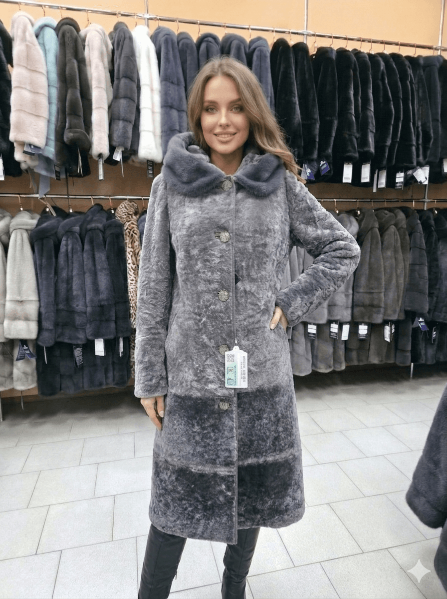 Почему модель ОМ-Снежка-03 достойна вашего внимания: Премиальный Астраган: Мех отличается особым завитком и коротким ворсом, что делает изделие визуально стройным и очень легким. При этом астраган великолепно держит тепло и не боится влажного снега. Роскошный капюшон с норкой: Глубокий капюшон с отделкой из натуральной норки — это не только статусная деталь, но и надежная защита от ветра. Он мягко обрамляет лицо и позволяет обходиться без шапки. Эффект «Градиент»: Дизайнерское решение в нижней части шубы — чередование широких полос разных оттенков серого — придает модели динамичность и визуально вытягивает силуэт. Идеальная длина (110 см): Длина ниже колена — золотой стандарт для российской зимы. Она отлично сохраняет тепло и гармонично смотрится с любой обувью. Характеристики: Артикул: ОМ-Снежка-03 Материал: Натуральный астраган (высший сорт), отделка капюшона — натуральная норка. Цвет: Благородный серый (Antracite / Grey). Размерный ряд: Широкая палитра размеров от 40 до 60. Мы поможем подобрать размер, который сядет на вас безупречно. Сервис, которому доверяют: 🚛 Доставка по всей России — доставим вашу шубу быстро в любой регион РФ. 💎 Оплата после примерки — никаких рисков. Вы оплачиваете покупку только после того, как убедитесь в идеальном качестве и посадке. 📸 Реальные фото — вы получите именно ту модель, которую видите на фото. Хотите встретить зиму красиво? Забронируйте свой размер модели ОМ-Снежка-03 уже сегодня — просто напишите нам в сообщения!