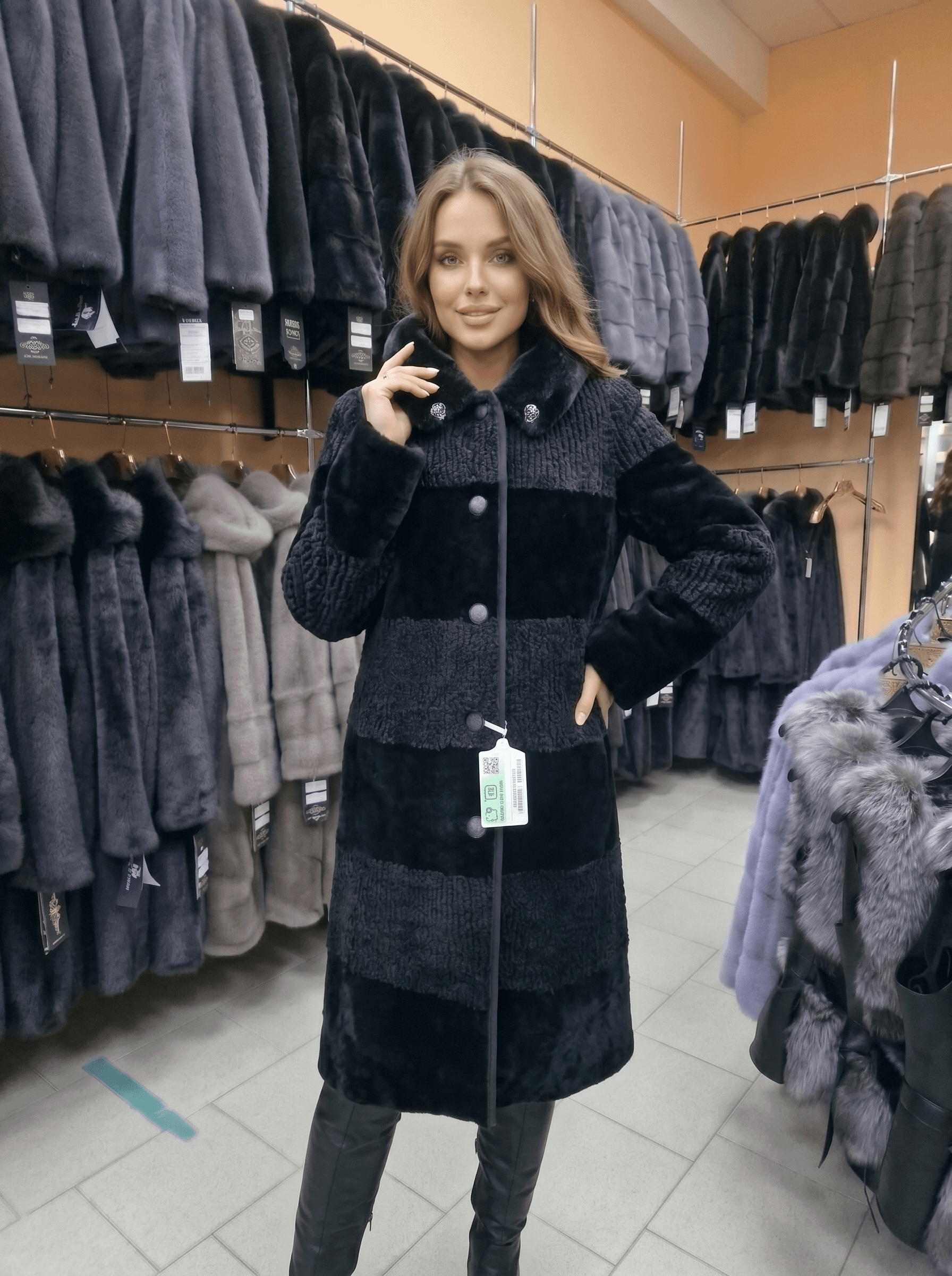 Шуба из облегченного мутона ОМ-Снежка-02: Игры фактур в классическом черном Стильное решение для больших холодов. Модель ОМ-Снежка-02 — это идеальный баланс между практичностью и авангардным дизайном. Благодаря чередованию горизонтальных полос разной фактуры, классическая черная шуба превращается в оригинальный элемент гардероба, который подчеркивает вашу индивидуальность и безупречный вкус. Почему стоит выбрать модель ОМ-Снежка-02: Облегченный мутон: Современная технология выделки делает мех невероятно мягким и пластичным. Шуба не кажется громоздкой, обеспечивая при этом максимальное тепло даже при длительных прогулках. Дизайнерское комбинирование: Чередование гладких и фактурных полос создает динамичный образ и визуально стройнит фигуру. Комфортная длина (110 см): Оптимальная длина «ниже колена» — это лучшая защита от пронизывающего ветра. Она идеально сочетается как с платьями, так и с высокими сапогами. Теплый капюшон: Глубокий и уютный капюшон полностью заменяет головной убор, надежно согревая и позволяя сохранить укладку. Качественная фурнитура: Крупные акцентные пуговицы служат дополнительным украшением модели. Характеристики: Артикул: ОМ-Снежка-02 Материал: Натуральный мутон (облегченная выделка). Цвет: Насыщенный черный. Размерный ряд: Широчайшая палитра размеров — от 40 до 60. Крой модели продуман так, чтобы обеспечить идеальную посадку в любом размере. Покупайте с комфортом: 🚛 Доставка в любую точку РФ — мы отправим вашу шубу быстро и бережно. 💎 Оплата после примерки — никаких рисков и предоплат. Вы платите только тогда, когда убедитесь, что модель вам идеально подходит. 🤝 Прямые поставки — мы гарантируем качество каждой шкурки и надежность пошива.