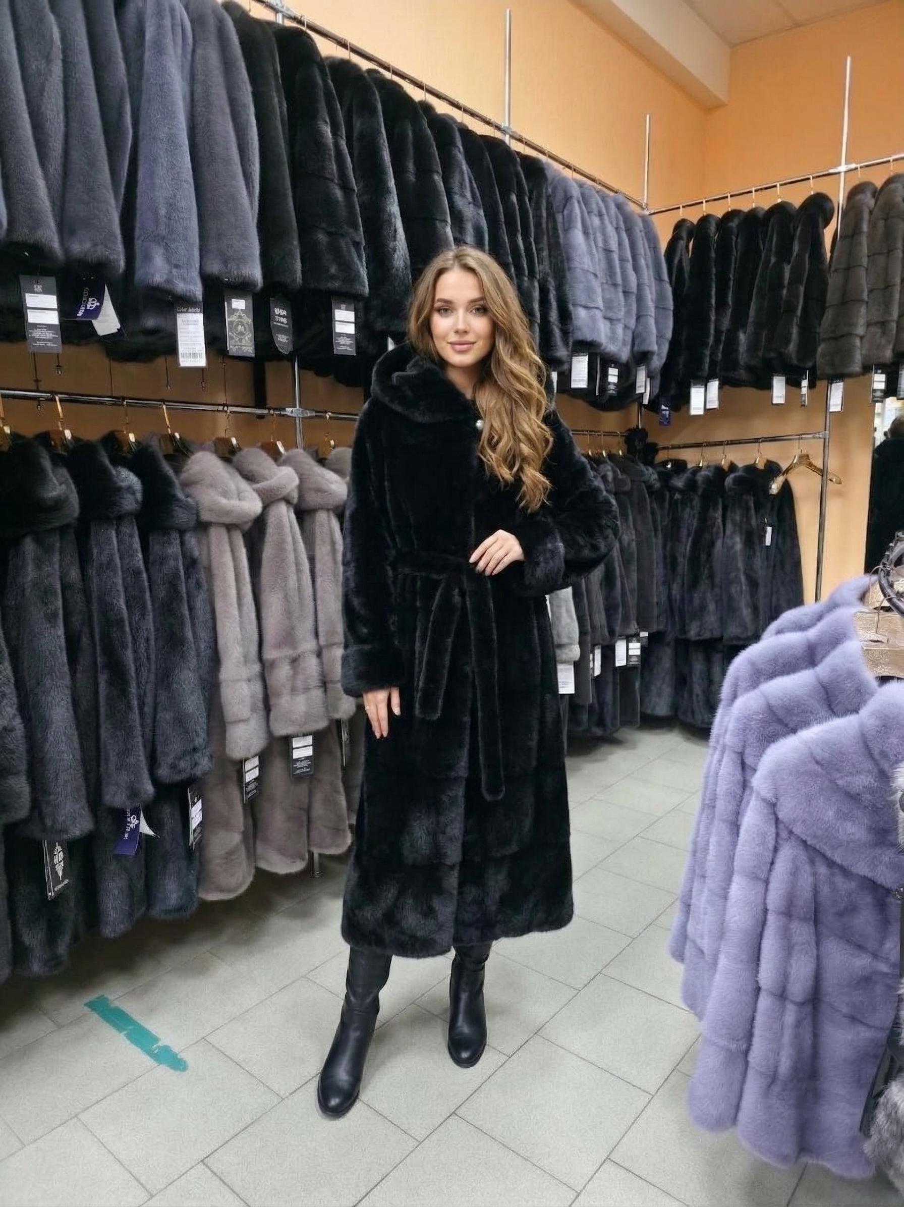 Ваша идеальная зима в стиле Black Velvet Представляем флагман нашей коллекции — роскошную шубу из натурального меха норки в глубоком черном цвете. Это сочетание безупречного стиля и королевского комфорта. Почему эта модель заслуживает вашего внимания? Фасон «Кимоно»: Свободный крой с мягкой линией плеча и поясом. Она идеально подчеркивает талию, создавая женственный силуэт, и при этом дарит полную свободу движений. Королевская длина (120 см): Максимальное тепло и статус. Такая длина защитит от самых суровых морозов и будет роскошно смотреться с любым нарядом — от вечернего платья до делового костюма. Глубокий капюшон: Не просто деталь, а надежная защита от ветра. Он заменяет головной убор, позволяя сохранить идеальную укладку. Мех премиум-класса: Плотный подшерсток, ровный ворс и благородный «стеклянный» блеск черной норки, который притягивает взгляды. Сервис, которому доверяют: Доставка по всей РФ — привезем в любую точку страны. Оплата после примерки — вы оплачиваете покупку только тогда, когда убедитесь в идеальном качестве и посадке. Никаких рисков!