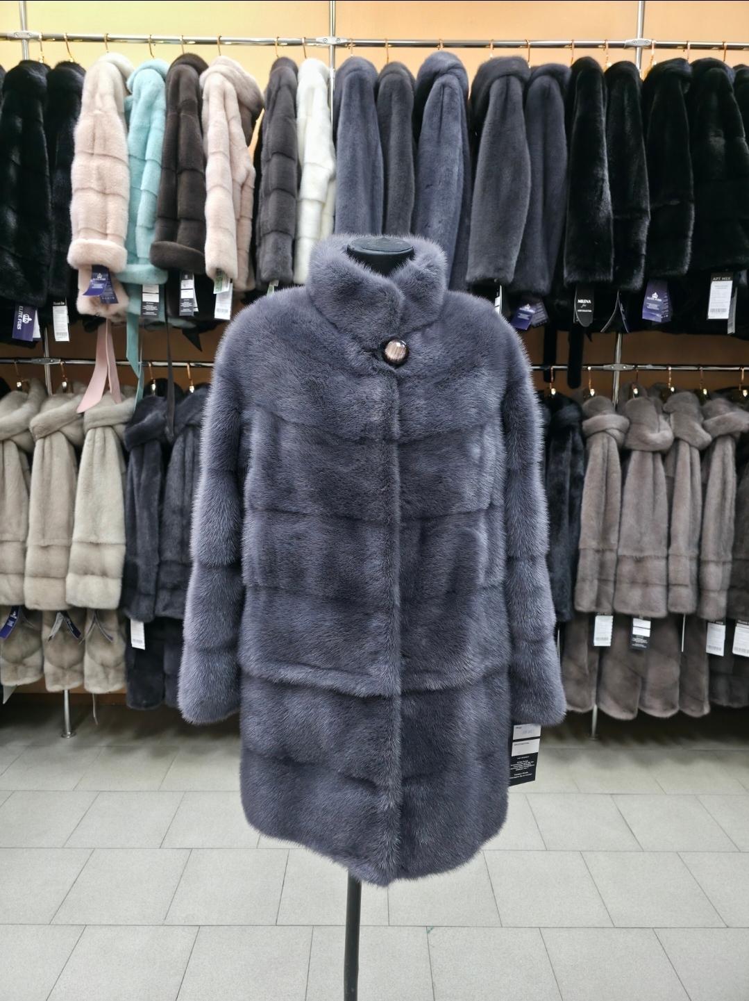 Норковый полушубок, модель поперечная, транс...