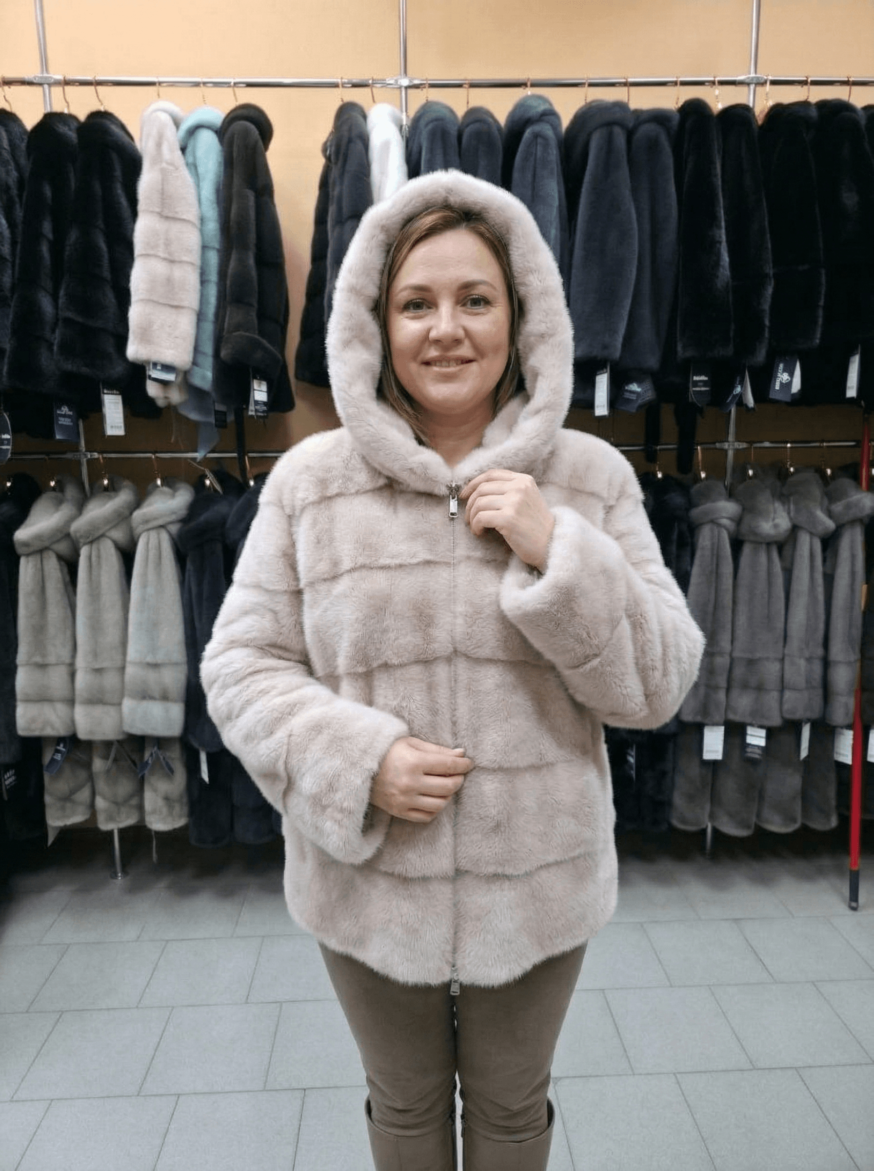 Нежность и уют: Норковый полушубок в цвете «Пудра» Ищете что-то особенное для этой зимы? Посмотрите на эту великолепную модель! Цвет «пудра» — это идеальный баланс между классикой и современным стилем. Он освежает образ и добавляет ему благородного сияния. Почему эта модель станет вашей любимой: Трендовый цвет: Нежный пудровый оттенок, который подходит любому цветотипу. Стильная «поперечка»: Горизонтальная выкладка меха — самый востребованный дизайн, подчеркивающий фактуру норки. Максимальный комфорт: Удобная застежка-молния позволяет быстро одеться, а уютный капюшон надежно защитит от ветра и снега, сохраняя прическу. Идеальная посадка: Мы предлагаем богатейший выбор размеров — от 40 до 58. Каждая найдет свой идеальный силуэт! Покупайте уверенно: Доставка по всей РФ. Привезем быстро и бережно. Примерка перед покупкой. Никаких котов в мешке! Вы оплачиваете товар только после того, как убедитесь в безупречном качестве и идеальном размере.