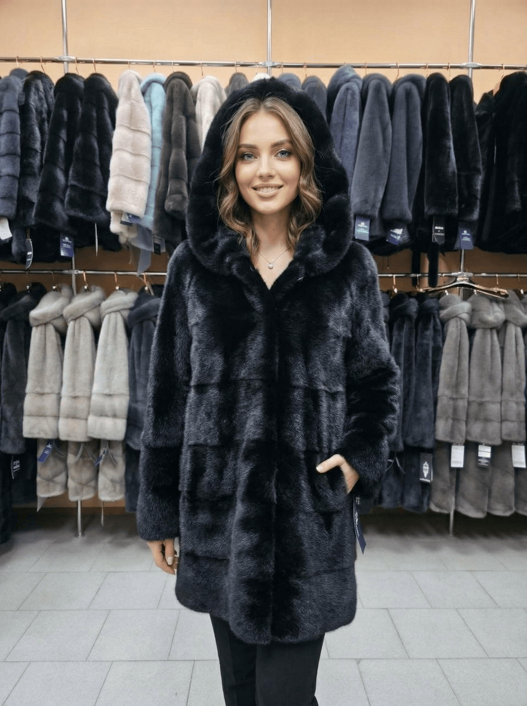 Безупречная классика: Черный норковый полушубок «Поперечка» Есть вещи, которые не нуждаются в представлении. Этот полушубок из натуральной норки в глубоком черном цвете — воплощение стиля, статуса и тепла. Идеальный выбор для тех, кто ищет универсальную верхнюю одежду на многие сезоны. Главные преимущества модели: Глубокий черный цвет: Мех обладает роскошным природным блеском, который выглядит дорого при любом освещении. Стильная «поперечка»: Популярный крой широкими полосами визуально делает мех еще более густым и объемным. Комфортная длина 90 см: Оптимальный вариант, который закрывает бедра и отлично сочетается как с брюками, так и с платьями. Уютный капюшон: Глубокий и теплый, он станет вашей надежной защитой от холода и позволит отказаться от головных уборов. Идеальная посадка: В наличии полный размерный ряд — от 40 до 58. Мы поможем подобрать размер точно по вашим параметрам! Покупайте с комфортом: Оперативная доставка по всей РФ. Мы отправим вашу шубку в кратчайшие сроки. Оплата только ПОСЛЕ примерки. Вы сможете лично оценить качество меха, мягкость подпушка и идеальную посадку перед покупкой.