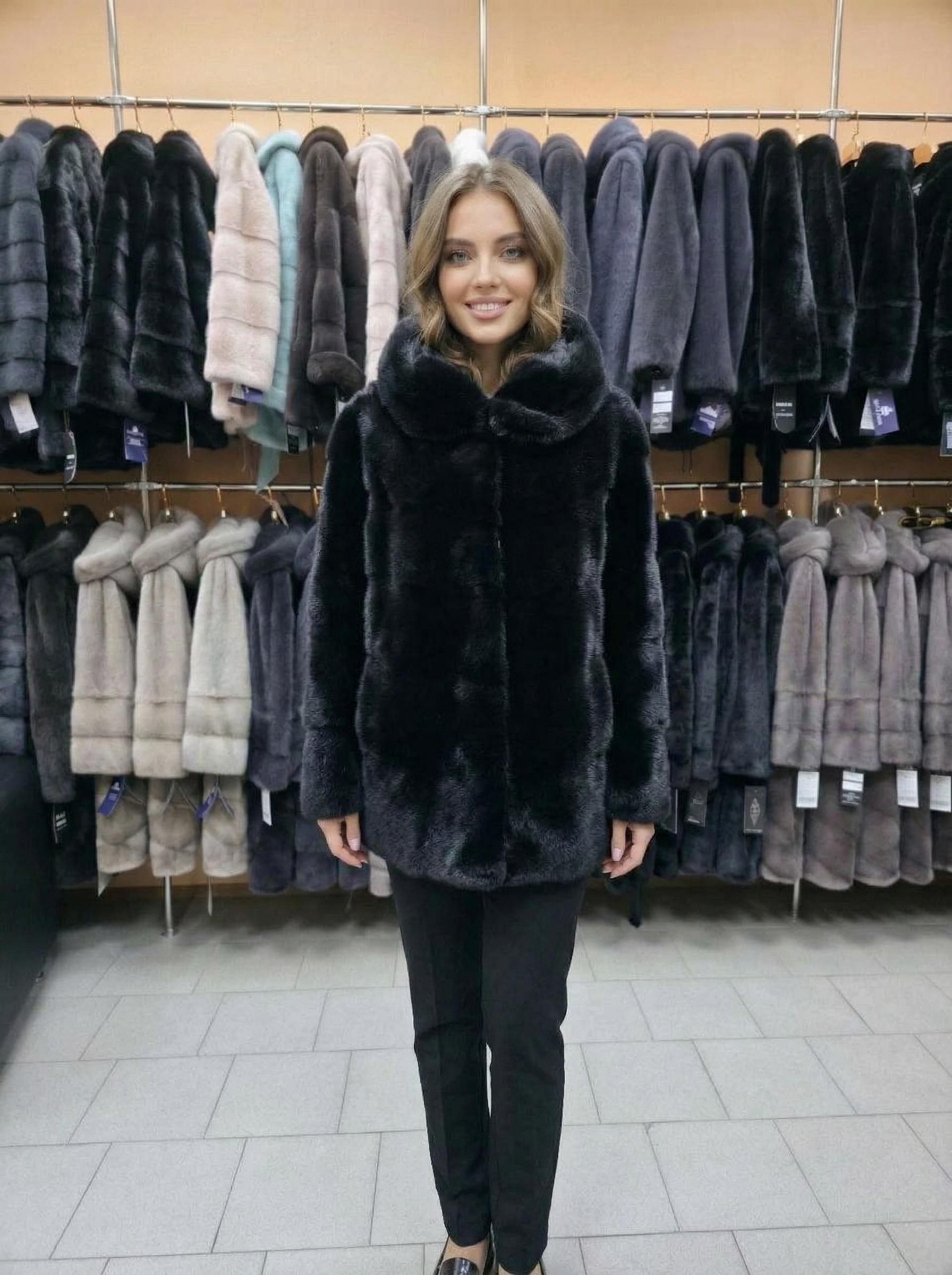 Стиль и комфорт: Норковый полушубок-рубашка в черном цвете Забудьте о громоздких и тяжелых шубах! Модель «рубашка» — это главный тренд сезона для тех, кто ценит динамичный образ жизни и безупречный стиль. Глубокий черный цвет с зеркальным блеском натуральной норки делает этот полушубок универсальной базой вашего зимнего гардероба. Почему эта модель — хит нашей коллекции? Трендовый фасон: Свободный крой «рубашка» с закругленными боками придает образу легкости. Она идеально сочетается как со строгими брюками, так и с любимыми джинсами. Практичная длина 80 см: Идеальный вариант для города и самая удобная модель для тех, кто часто бывает за рулем («автоледи»). Уютный капюшон: Глубокий, теплый и мягкий — он надежно защитит от ветра и позволит вам отказаться от шапки, сохраняя укладку. Премиальный мех: Натуральная норка с густым подпушком обеспечит комфорт и тепло даже в сильные морозы. Сервис и детали: Широкая размерная сетка: В наличии полная палитра размеров — от 40 до 58. Поможем подобрать идеальную посадку по вашим меркам! Доставка по всей РФ: Отправим в ваш город бережно и оперативно. Оплата после примерки: Никаких рисков! Сначала убедитесь в качестве меха и идеальном размере, и только потом оплачивайте покупку.