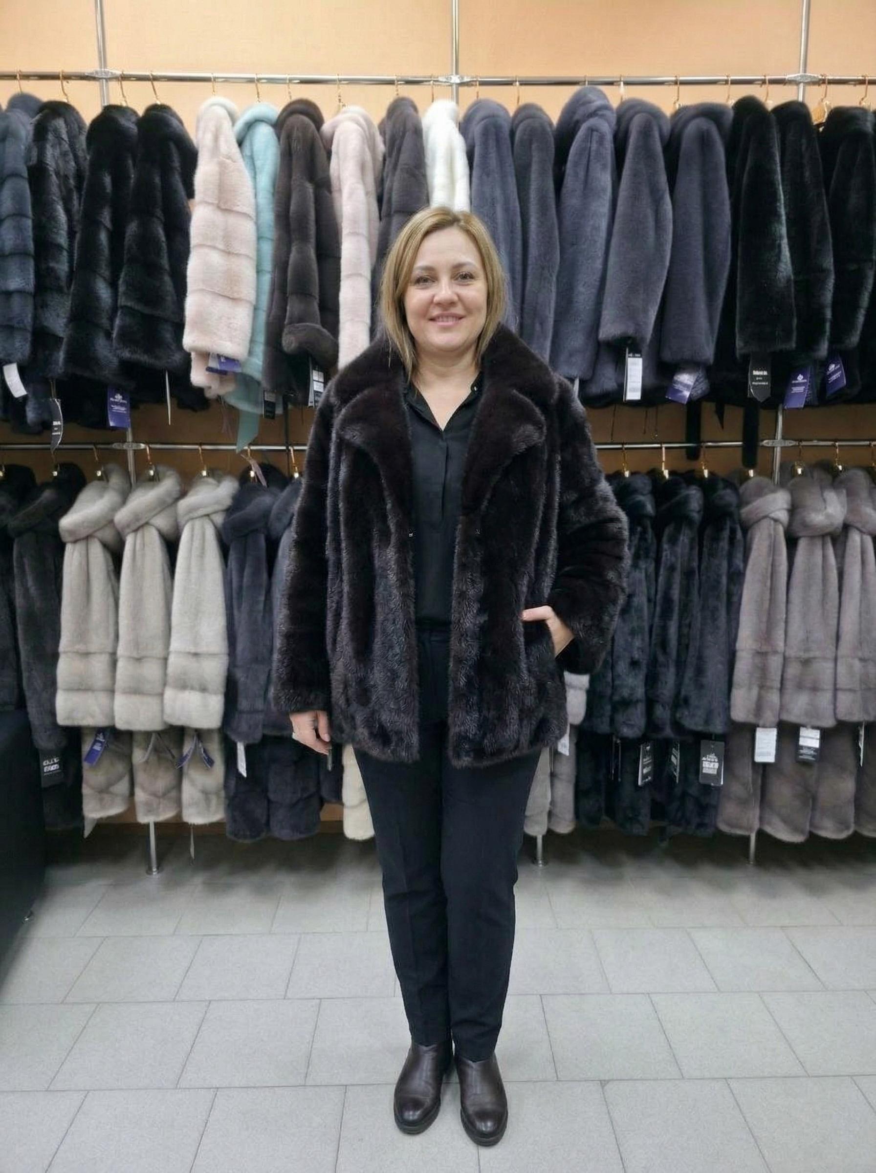 Совершенство стиля: Норковый полушубок-рубашка с английским воротником Эта модель — настоящий манифест элегантности и современного комфорта. Свободный крой «рубашка» в сочетании с классическим английским воротником создает образ, который выглядит дорого, статусно и при этом абсолютно непринужденно. Почему эта шубка — ваш идеальный выбор? Английский воротник: Изысканная деталь, которая придает модели черты роскошного жакета. Он красиво обрамляет лицо и позволяет носить шубу с любимыми аксессуарами — от шелковых платков до объемных шарфов. Трендовый фасон: Прямой силуэт с легким акцентом на плечи и свободными рукавами дарит невероятное чувство легкости. Она идеально впишется и в деловой гардероб, и в расслабленный городской стиль. Глубокий черный цвет: Натуральная норка премиального качества с густым подпушком и зеркальным блеском. Этот мех не только согреет в мороз, но и будет радовать вас своим видом долгие годы. Универсальность: Модель отлично подходит как для прогулок, так и для поездок за рулем — крой не стесняет движений. Сервис и детали: Рекордная размерная сетка: В наличии все размеры от 40 до 64. Мы поможем подобрать идеальную посадку по вашим меркам! Доставка по всей РФ: Бережно и оперативно доставим в любой регион. Оплата только ПОСЛЕ примерки: Никаких рисков! Сначала убедитесь в безупречном качестве меха и идеальном размере, и только после этого оплачивайте покупку.